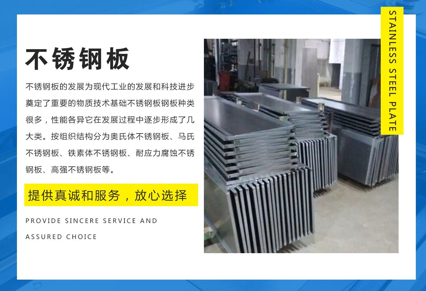 無(wú)錫慶發(fā)通金屬制品有限公司以良好的信譽(yù)、完善的服務(wù)贏得了國(guó)內(nèi)石化企業(yè)的一至好評(píng)。備有各種材質(zhì)的優(yōu)質(zhì)不銹鋼板加工,不銹鋼板激光切割,不銹鋼板激光剪折,不銹鋼板切割加工廠等產(chǎn)品。公司全體員工歡迎新老客戶光臨、垂詢! 自成立以來(lái),一直把304不銹鋼板產(chǎn)品質(zhì)量作為企業(yè)生存的根本,把服務(wù)質(zhì)量作為我們成功的橋梁我們衷心希望與廣大客戶建立業(yè)務(wù)聯(lián)系,提供優(yōu)質(zhì)服務(wù),同創(chuàng)業(yè),共發(fā)展。我們本著“質(zhì)量第一,服務(wù)第一”的宗旨,為您提供一流的產(chǎn)品,一流的服務(wù)。 全體同仁衷心歡迎您到我公司參觀指導(dǎo)洽談業(yè)務(wù)。 我公司秉持“以人為本、用戶至上、質(zhì)量興企”,從優(yōu)惠的價(jià)格到優(yōu)質(zhì)的材料,讓每個(gè)客戶滿意,使我們?cè)陂L(zhǎng)期合作中實(shí)現(xiàn)共贏!...